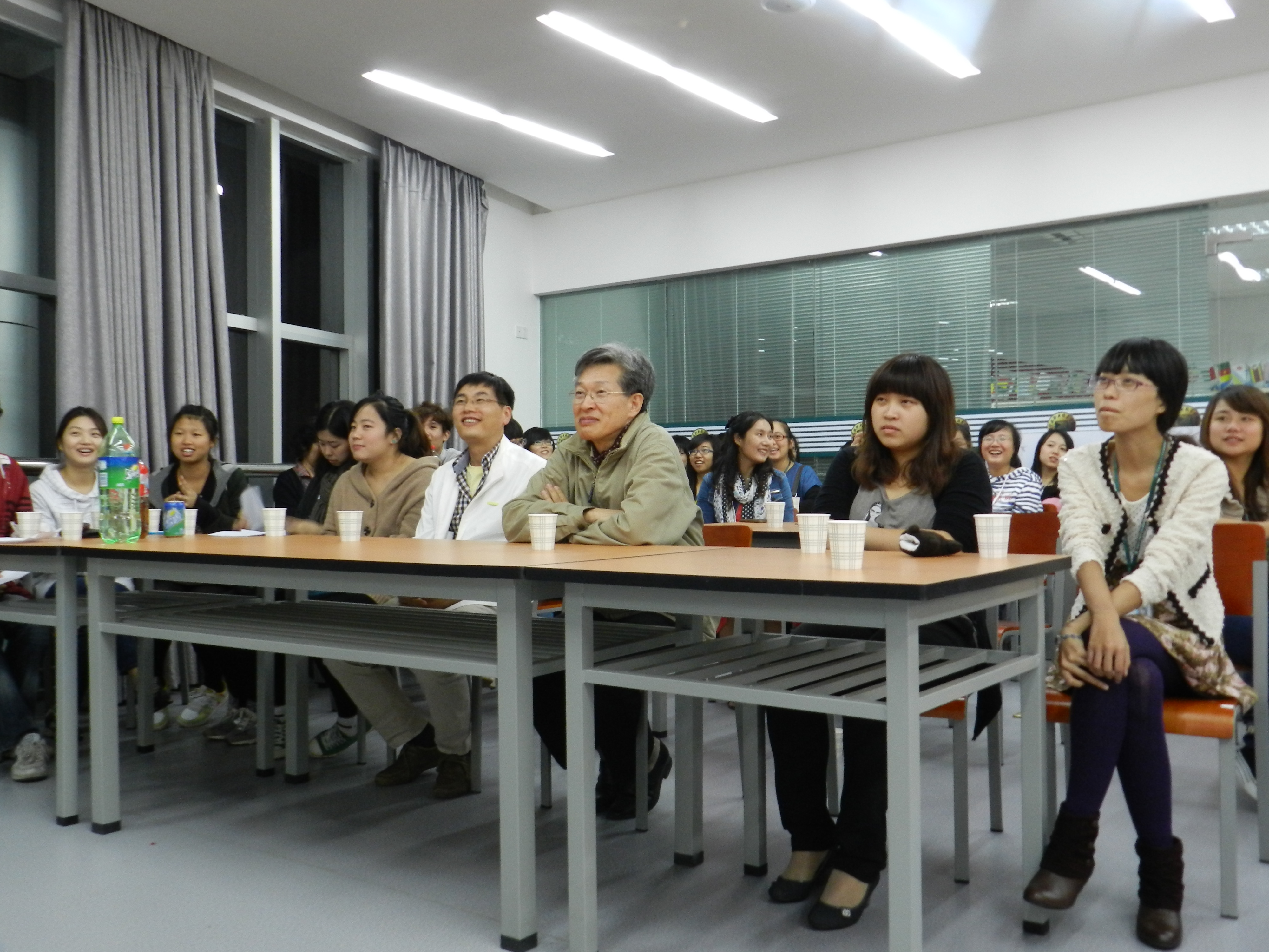 第三个节目是给电视剧"浪漫满屋''配音,共有四组选手参加,其中最为精彩的当然要数韩国交换生的表演,那神情、语言、动作实在是完美。这个节目实属有趣,有新意。第四个节目是外教给我们讲述面试注意事项,然后对大三的学长学姐当场用韩文进行面试,由外教指出面试者的不足之处。第五个节目是外教与韩国交换生用韩语教我们所有在场的参加者学习绕口令。这个节目的参与度非常高,尤其是大一新生热情饱满,非常活跃,可以感受到他们那份学习的热情。