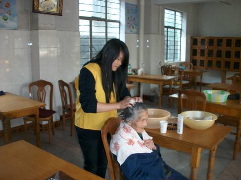 此次志愿服务活动中,我们以福利院孤寡老人的平时生活,心理状况作为切入点,志愿者通过同玉兰社区的沟通和交流,在社区长来福利院开展了为老人们清洗,修剪头发,剪指甲,陪老人聊天等服务活动,此外,我分院小分队志愿者们还开展了卫生清洁,被衣晾晒等活动。在欢快的气氛中,志愿者们和老人们建立了深厚的友谊,在活动过程中,有位老奶奶说:“孩子们,你们什么时候再来啊,有时候真得很无聊,你们每次来,都是我最开心的时候”。这句话让志愿者备受感动。“送粥奶奶”国际志愿者队伍――长来福利院志愿者小分队不怕脏,不怕累,用他们的爱心和孝心令福利院和福利院老人们的面貌都焕然一新!