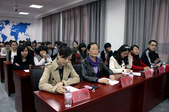 12月5日下午3时国际学院在外语楼援外班举行了英语演讲比赛。出席该比赛的有国际学院院长周英华老师,国际学院党总支副书记沃意琳老师,外事处朱宇盈老师,还有英语专业的翁亚玲老师,付梦蕤老师,魏晋老师,肖爱华老师和倪洪源老师。