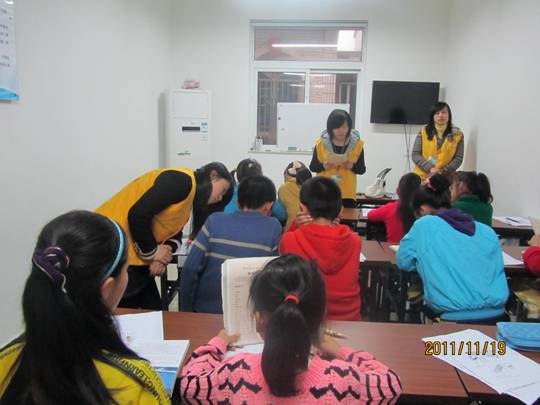 简短的交流之后,我们便开始上课。由于很快就要期末考试了,我们主要针对考试做了一些题目。我们对四、五和六年级的学生进行了测试,并对测试进行批改和讲解。此外,还为他们预习新课,复习旧课,听写单词。课程辅导结束之后,我们和学生们一起玩几场游戏,本次的周末假日辅导便在孩子们欢乐的笑声中结束。临走之时,孩子们说:“自从参加假日学校,我们接触到了在学校上课时从没接触过的方式。老师们用我们喜欢的的方式教我们上课,这让我们学到了知识。”