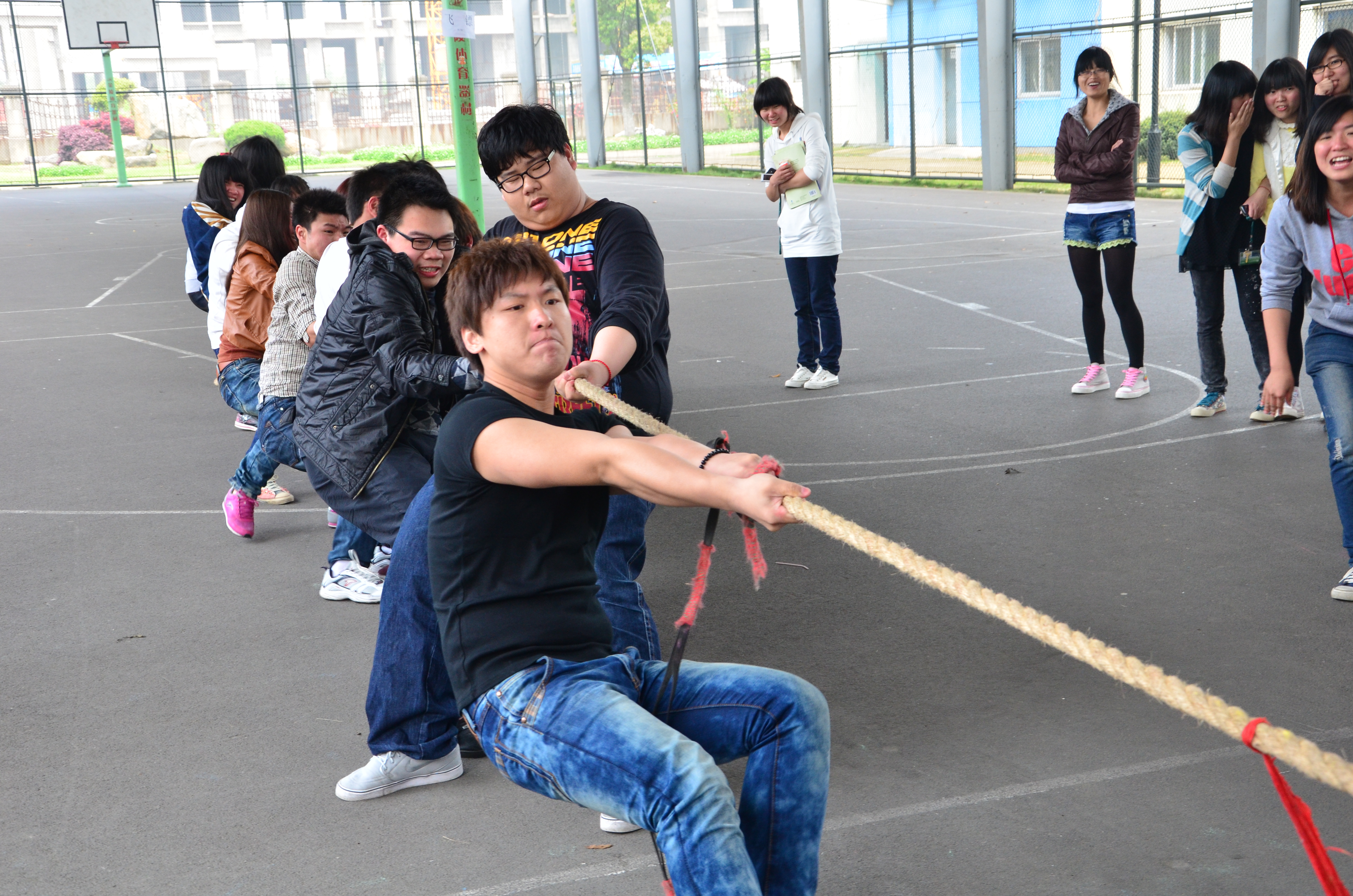 为了丰富学生的课余文化生活,增进学生之间的交流,增强学生的凝聚力,培养学生的团队协作能力。2012年4月19日中午12点15分,宁波职业技术学院拔河比赛在风雨篮球场热闹开场。 本次比赛以系别为单位,经过连日的比拼,选出了国际学院与工商管理系中的优胜者进行决赛,决出名次。