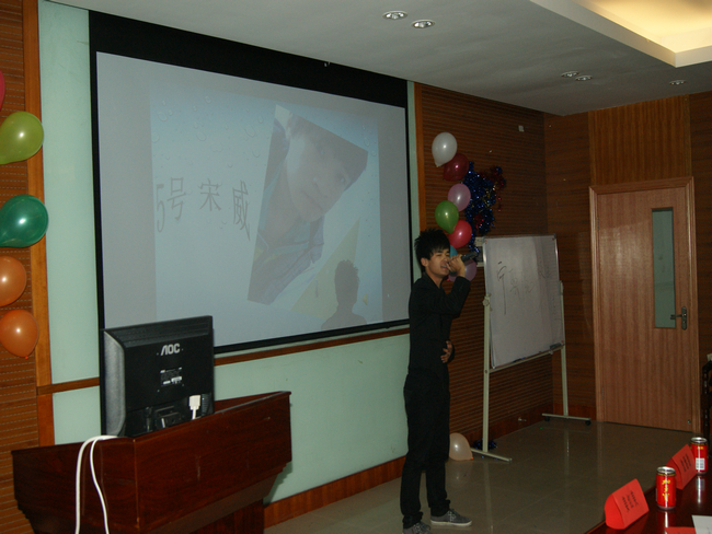 比赛期间,插入观众互动环节“我爱猜歌词”即由工作人员放一首伴奏,观众抢答,赢者有奖品。互动游戏同学们积极参与,并为参与者呐喊加油。营造了良好的比赛氛围。