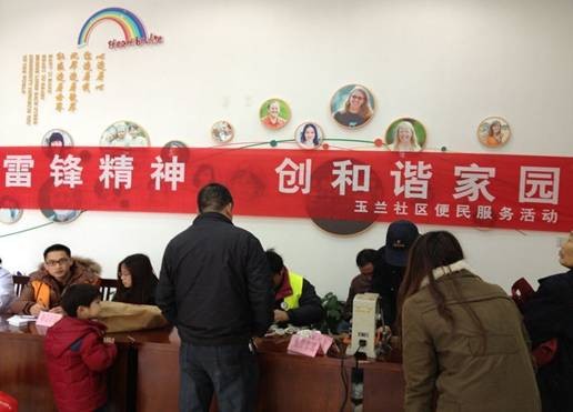 3月2号早上9点,我宁波职业技术学院国际学院志愿者部派志愿者小分队前往玉兰社区参加学雷锋精神,创文明社区活动。其中一部分志愿者负责外出分发有关社区活动的宣传册,欢迎居民前来参加活动,不久大批的宣传资料很快就发到了居民手中,志愿者们传递着一份份雷锋精神。社区里有免费修电器、法律咨询、免费血压测量等活动。活动一开始各个服务项目前都排着队伍。另一部分志愿者便担当起维护秩序和引导介绍的角色。耐心劝导居民排好队伍,给后来的居民引导想去的项目。活动进行的井井有条。许多老年人参加免费理发的活动,志愿者们给等待的老人搬凳子坐,并且和他们愉快的交谈着,老人们脸上洋溢着灿烂的笑容。