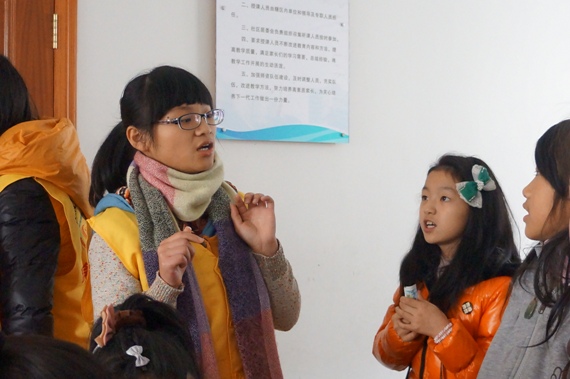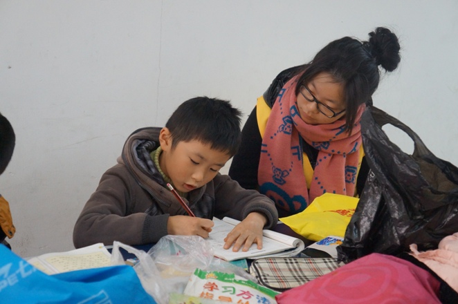 与往常一样的是,孩子们还是那么的有礼貌,对志愿者既敬友爱;学习还是那么的认真,遇到不解的问题,就问志愿者。但是今天来的新学生,却有很多没带课本、作业的;上课的时候也一直在玩耍,志愿者老师就对他们进行了一对一的辅导。