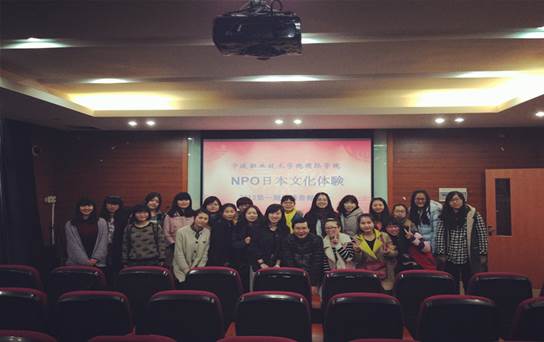本次报告会由第一批参加日本文化体验的商务日语3112班蒋莉、张珊珊、黄小玲和商务日语3111班林巧彦做汇报,她们向在场的我院日语专业的师生们展示了日本服务行业知识、日本传统文化体验活动、日本人家庭访问活动、日本著名的景点参观等活动内容。之后我校原应日3100班的王丹凤同学分享了日本留学经验。她目前已经被日本关西学院大学(本科)社会福祉学院进修社会福祉专业(本科)录取。在汇报即将结束的时候,五位代表还解答了场下同学的各项疑问。最后是由日籍教