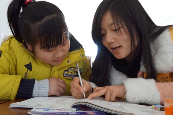 八点正式上课。上课时孩子们对支教的志愿者们表现的一点都不陌生,师生配合的都很默契。当孩子们百思不得其解时,我们会以另一种方式生动地讲解,拓展了孩子们的思维空间;当他们完成课时作业时,我们便仔细地检查并指出,调动了他们学习的积极性。