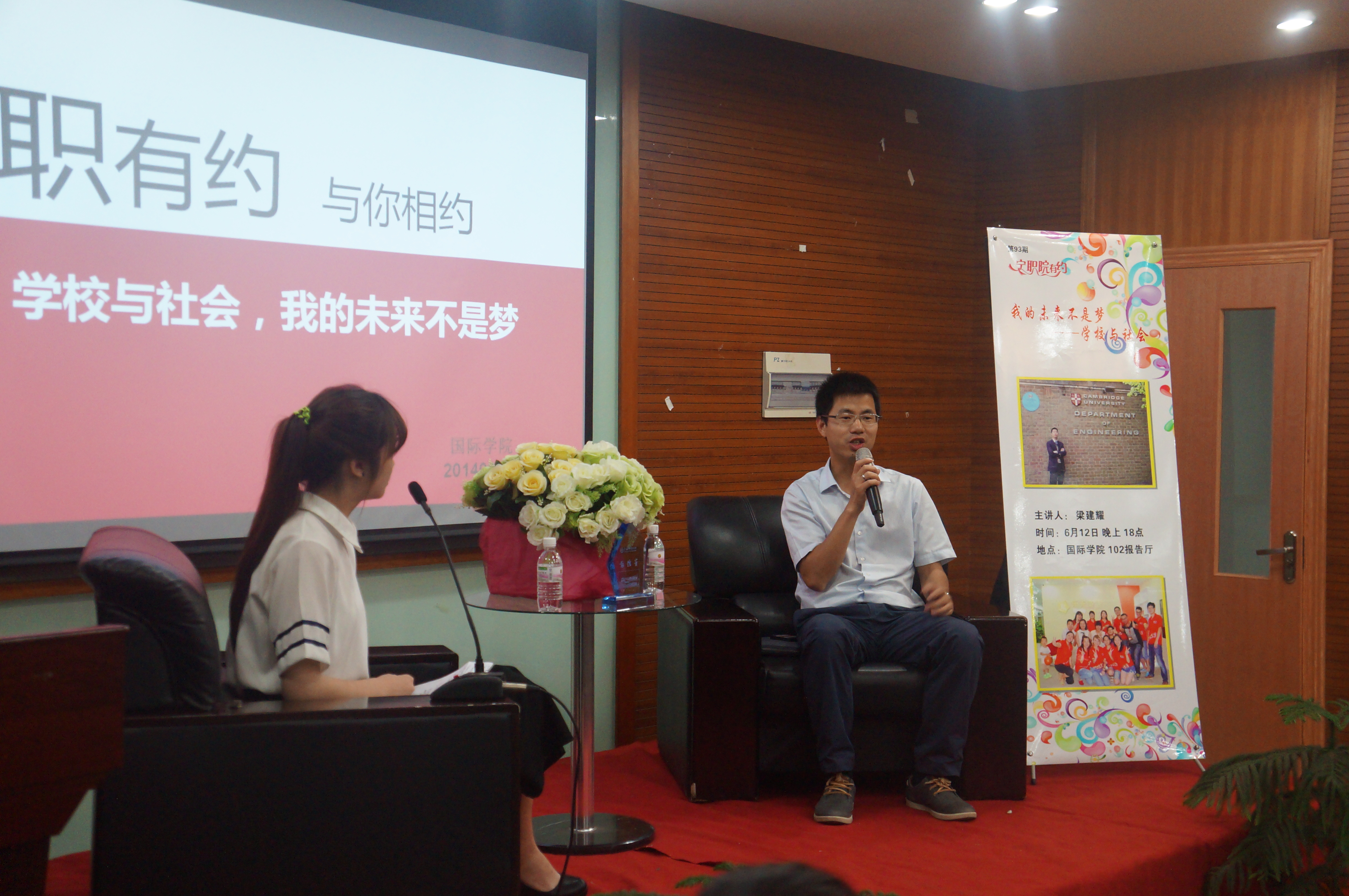 2014年6月12日,宁波职业技术学院在国际学院102报告厅成功举行了第93期宁职有约,本次访谈以“学校与社会,我的未来不是梦”为主题。