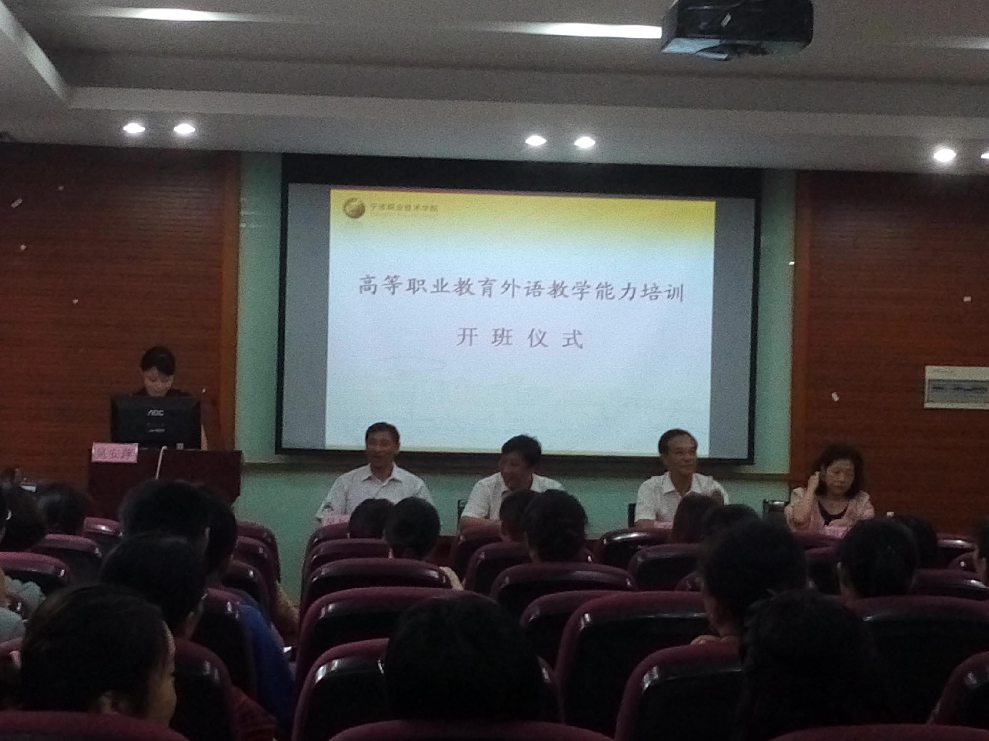 2014年6月21日,在国际学院102报告厅举办了高等职业教育外语教学能力培训的开班仪式。校内外共60名左右教师准时出席了本次开班仪式。