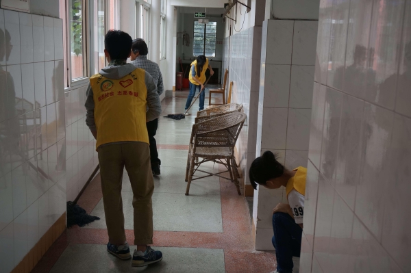 一到目的地,长来福利院领导便对我们的到来表示了欢迎并给我们安排了工作,志愿者们很快便投入到自己的清扫工作中。上午10点许,许多老人已经起床,看到志愿者们忙碌的身影,不时有老人对志愿者们的热心服务啧啧称赞,也有志愿者与老人亲切地攀谈。他们中有一些人在年轻时是人民教师,有一些是抗战战士,这些为建设祖国献其一生的老人们,在晚年时应该受到全社会的关爱与照拂。