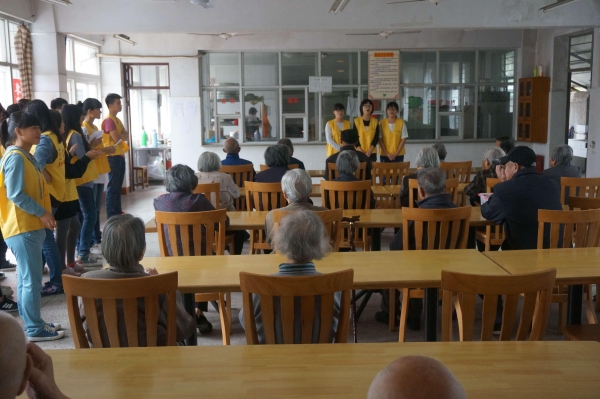 图为:志愿者为老人表演