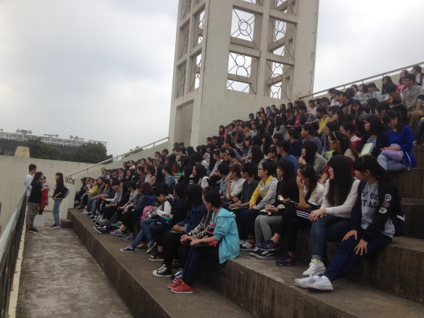 2014年10月27日中午国际学院啦啦队的全体队员们聚集在田径场,召开国际学院运动会啦啦队动员大会。