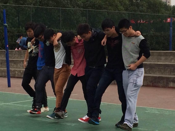 上午十点准时开始了迎面接力的团体赛,在排山倒海的欢呼声与热烈的掌声中,参赛的学生都使出了浑身的力量,所有的注意力都紧紧的集中在接力棒上,为的是不留下掉棒的遗憾。之后,十人十一足也展开了紧张的比赛。随着口哨声响起,国际学院和电信学院的男生们都肩环肩地向前出发,肢体上存在的略微不协调,短暂而又紧张的一分钟顿时分出了胜负。国际学院的代表队虽然没有赢得胜利,但他们并没有沮丧反而是搂在一起不禁笑出了声。