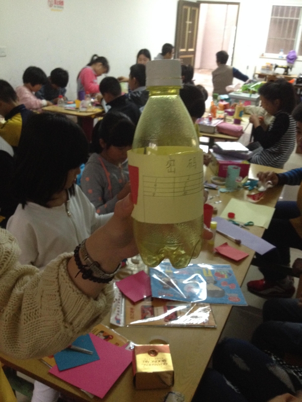 随后,支教志愿者带领他们做了手工制作,孩子们都无比兴奋,拿出了事先准备的剪刀,彩纸,矿泉水瓶,开始制作笔筒,储蓄罐等。在制作过程中,不时发出阵阵笑声。不久后,这些矿泉水瓶就在他们手中变成了一件件漂亮的艺术品。儿童的世界总是如此简单,手工劳动就能带给他们极大的成就感和幸福感。