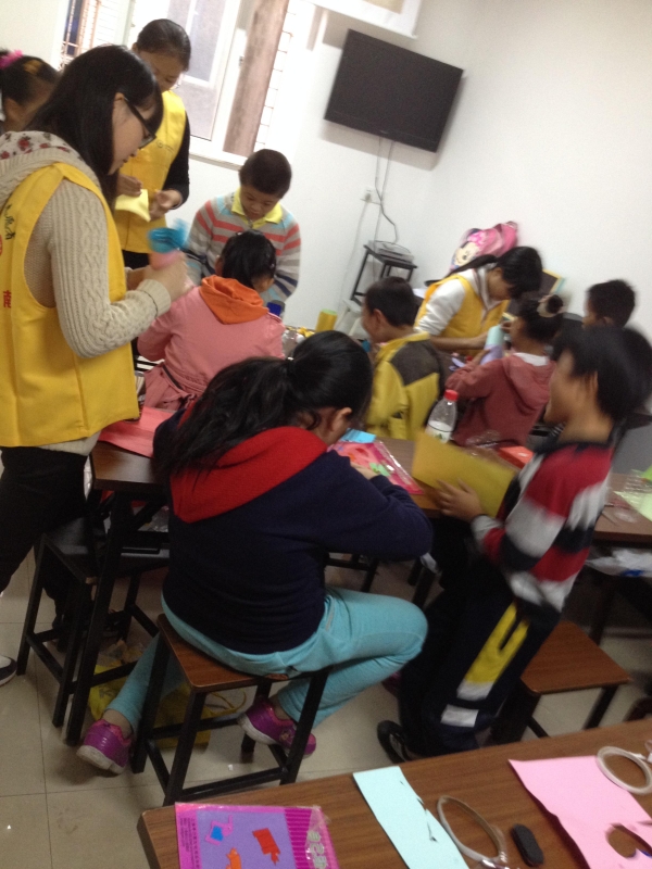 一进门,便看见许多小学生早早地在那里,每个人都是笑意盎然,似乎在迎接朋友的到来。8点30分,支教活动准时开始,在简单给志愿者安排工作之后,每个人都融入了与小朋友的互动中,他们的父母多是外来务工人员,没有双休日,孩子们就被送到这里,在这里完成作业,接受辅导。孩子们对我们的到来十分开心,稚嫩的脸上一直洋溢着笑容,脆生生的一声声“姐姐”,“老师”让每位志愿者感受到他们对人的友好和对学习的渴望。