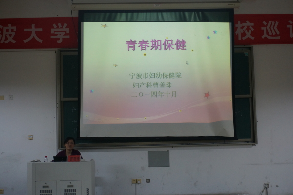 2014年11月12日晚,学生们于精技楼501室聆听讲座。此次,国际学院特邀到宁波市妇幼保健院妇产科曹善珠医生,讲述有关《青春期保健》这一课题。