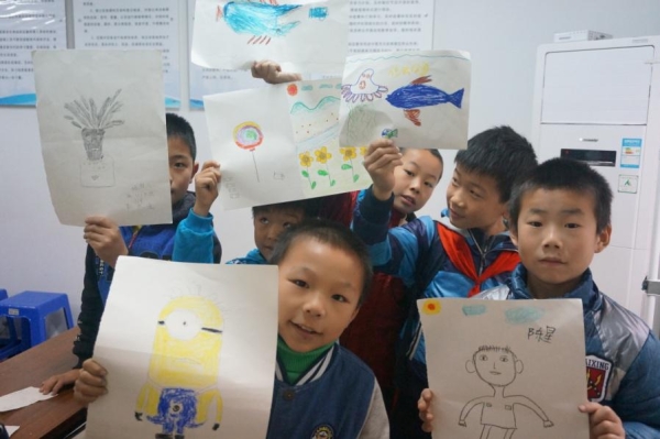 在上课期间,各组队长维持班级秩序,小队的志愿者成员则热心的解决小朋友的问题,整个课堂都是洋溢着一总轻松愉快的氛围,时不时的从哪个角落穿出来一阵笑声。很快就到了下课时间,志愿者们与小朋友玩耍在一块,有说有笑,建立了良好的友谊。到了最后的三十分钟,小朋友的特别画画像时间就到了,一个个笃定的眼神,认真的样子看起来绝不像一个三岁的孩子,那份笃定是不容置疑的。在课结束之后,所有小朋友都拿上了自己满意的画卷拍了一张赞赞的照片,最后在此次活动也在志愿者打扫间结束了。