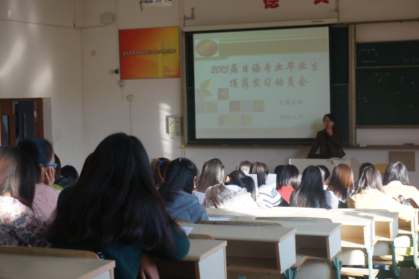 2014年11月20日下午3点,为让即将毕业的日语大三学生更好融入工作环境,宁波职业技术学院国际学院于明德楼103召开日语专业顶岗实习动员大会。