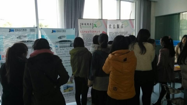 2014年12月5日,宁职院国际学院2015届小语种毕业生首场“供需见面、双向选择”会(简称“双选会”)在东校区国际学院一楼大厅举行。招聘现场火热,聚集了来自宁波市周围的17家单位,吸引了国际学院180多名毕业生进场应聘。