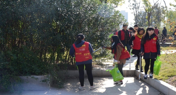 活动中,志愿者们开始分配好工作,携带着环保袋、火钳等实用工具沿着河道从外围开始清洁。远看这片区域很干净,但是冬天的风很大,而这里的垃圾又多是塑料袋,塑料泡沫及果皮一类,它们随风飘到草丛间,矮枝桠上,清理起来并不是很轻松,但是志愿者们都仔细地将其逐一捡起并放入环保袋中。