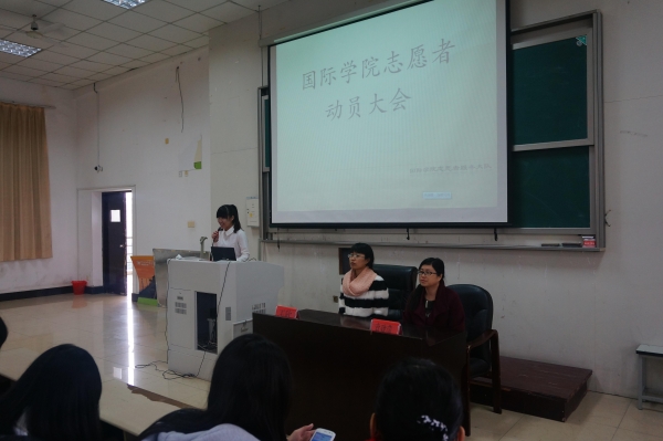 2014年12月10日12点15分,宁波职业技术学院国际学院志愿者部在东校区精技楼召开志愿者动员大会,通过老师和以往志愿者的精彩讲说,同学们都明白了什么是真正的志愿者,志愿者动员大会圆满结束。
