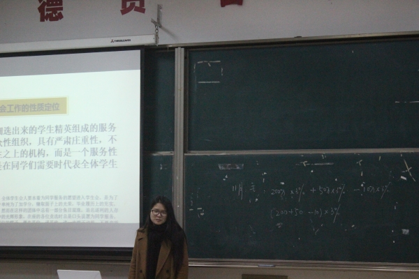 2015年1月6日,于明德楼103室国际学院团校培训圆满结束,参加此次结业大会的有国际学院主席团童雪儿,素质拓展部部长冯宏辉以及团校培训的全体学生会干部们。