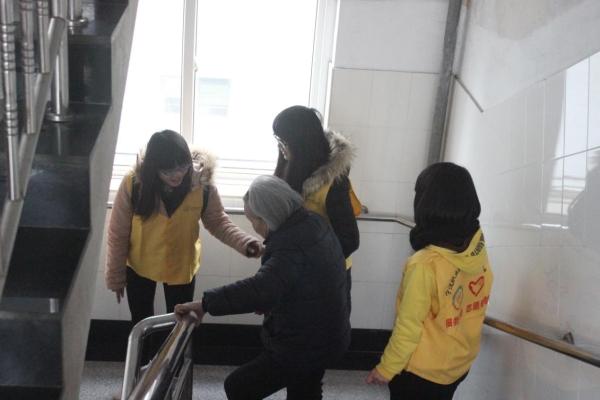 志愿者们各自组队,分别去各楼层打扫。清洁过程中也会偶尔遇见出来散步的老人,也许是孤单的缘故,有些老人们也会主动跟志愿者聊上几句。大至国家近些年的发展变化,小至志愿者们的在校就读状况。在交谈过程中,志愿者们也发现,一些老人的子女虽然也会时常前来探望但每次总是送来东西后便匆匆离开了,与老人的交流甚少,老人的内心免不了失落。志愿者们的到来,不仅仅起到打扫卫生的作用,也为孤单的老人送去了一份温暖。正是来自陌生人的关怀,点亮了他们心中那盏孤寂的灯。简单的几句话,却胜过再多的礼品。