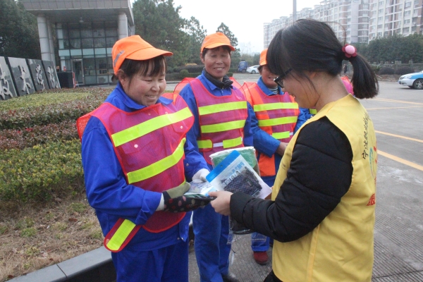 为了给学校周围这个片区的110位大碶街道环卫工人送上冬日里的一份暖意与关心,国际学院志愿者服务大队的同学们在12月初便开始为此次活动进行了初始的准备。从收集同学们的闲置物品到在食堂门口进行爱心义卖活动,这一个月来,志愿者们的身影似乎一直在校园内忙碌。正所谓“皇天不负有心人”,终于在这新的一年的年初,志愿者们募集了充足的经费,能够为环卫工人们购买了110双厚实的手套和110个防雾霾口罩。于是,在这晴空万里的清晨,志愿者亲手将手套和口罩递给了正在学校附近忙碌的七位环卫工人。这手套和口罩充满着爱心与温暖,环卫工人接过物品的时候双手几乎在颤抖,眼里饱含着难以表达的情绪,那应该是万分的感谢与激动。除去这七份物品,剩余的手套和口罩全部交给了大碶街道环卫站的副站长,副站长再三保证,一定把志愿者们暖暖的爱心送到每一个为这个片区不辞劳累,兢兢业业付出的环卫工人手里,让他们感受到贴切的暖意。