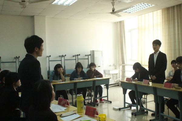 一开始,同学们用热烈的掌声欢迎辩手们的到来,接下来主持人有请辩手们进行自我介绍。应德3140的同学作为正方所持的观点是“人才的判定是靠考试”,而反方商英3141的同学所持的观点是“人才的判定不是靠考试”。此次决赛像正规的辩论赛那样一共有5个阶段。由一辩发完言后,双方的辩手开始选择另一方辩手来进行一对一公辩。辩手之间你来我往,字字珠玑,场面十分激烈。在经过短暂的攻辩时间,辩手们就自己之前所讲的观点作个小结。辩手们再一次对自己的论点进行了详细的陈述并与反方的观点相悖,再一次强烈地反驳了对方的观点。其后,在自由辩论阶段,由正方先开始,辩论时间为10分钟,每队各累计时间5分钟。赛场上,一方口若悬河,一方泰然自诺,舌枪唇剑,好不精彩!你有哲理盾,我有事实矛,谁也不甘下风!双方紧系自己的观点,以自己的观点作为基础对对方辩手的问题进行反驳。双方辩手针锋相对,互不相让,那些反驳的句子如本能一般从口里蹦出。在这场比赛里,可以不难发现有的辩手言辞流利,丝毫不怯场,辩词那是娓娓道来,给人一种如沐春风的感觉。看着辩论双方那激烈的交战,实在是让人酣畅淋漓,不由大声说声好!接下来又进行了观众提问时间和总结陈述阶段。