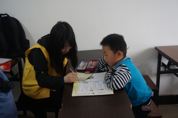 跟以往大致相同,先是给这群可爱的孩子们一节时间比较充裕的自习课,让他们投入到老师布置的作业中去。只有完成作业后,他们才能有充足的时间在随后的手工课上投入全部的心思。当然,由于活泼好动,总会有几个调皮的孩子在吵闹,志愿者们无奈之下只得拿出作为老师该有的“威严”来,才能降服这几个“熊孩子”。