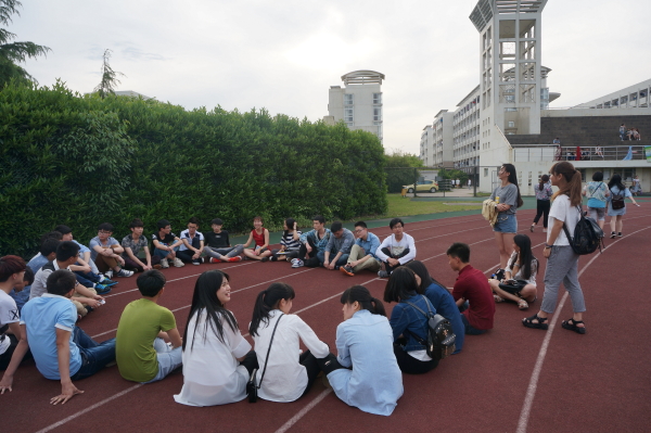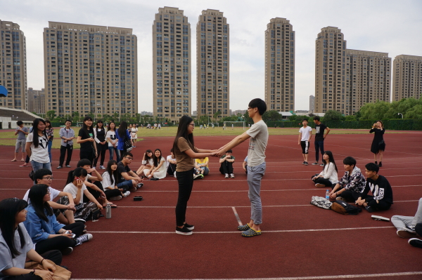 为了使活动顺利进行,国际学院志愿者服务大队周三下午在操场上举行了一个让各位单身认识大家的活动,在熟悉的击鼓传花和真心话大冒险中,游戏达到了高潮。击鼓传花选择了男生女生,由男生女生合作完成某些指定的动作:由男生公主抱着女生深蹲,男生抱着女生绕圈等等,多才多艺的同学们也带来了精彩的表演。经过这些活动,男生女生都有了自己心仪的对象,接着来就是互配的环节了,在场的男生都勇敢的向自己心中的女生表达了自己的心意。最后,有9对“三日情侣”参加了最后的体验活动。