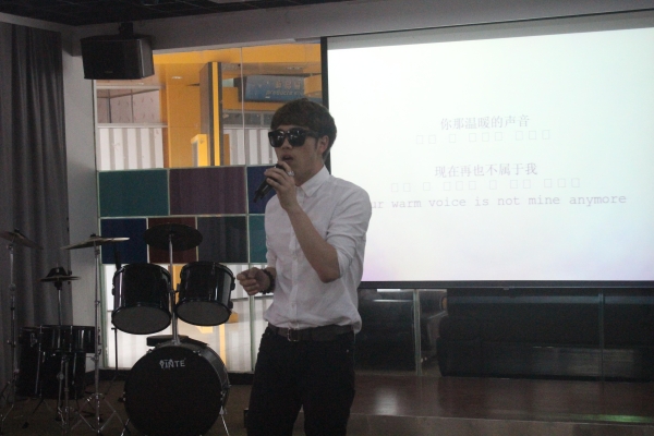 图为:韩国留学生卢兄来唱歌