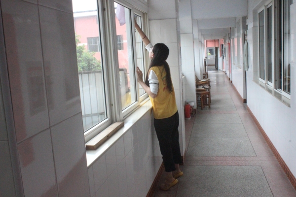 活动过程中,志愿者们积极主动地帮老人们打扫卫生——擦窗户和瓷砖的同学十分的细心和认真,她们先用湿毛巾擦了一遍后又用干毛巾重新擦一遍。扫地的同学不放过任何一处的垃圾,角角落落都去认真的打扫着,随后,拖地的同学立即跟上,弯着腰,用力地拖着。同学们那么卖力的打扫卫生是为了给老人一个干净舒适亮堂的生活环境。