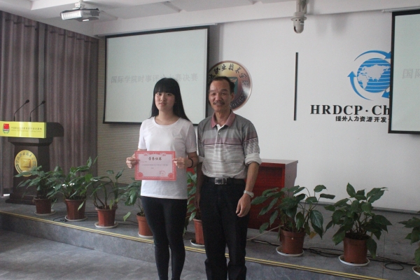 九位选手的演讲结束之后,马旭光老师进行了点评,对于选手们的表达能力和逻辑思维马老师给予了一定的肯定与鼓励,对于此次比赛的比赛方式马老师希望能够改进,比如可以添加现场抽取时事环节,让选手们临场发挥。点评结束,分数自然也出来了。主持人毛欣欣宣布获得此次比赛三等奖的是林晓丹同学、虞锦涛同学和李璐璐同学,获得二等奖的是谢孙炜同学和林洋洋同学,获得一等奖的是毛丹妮同学。