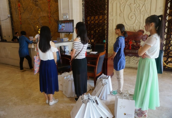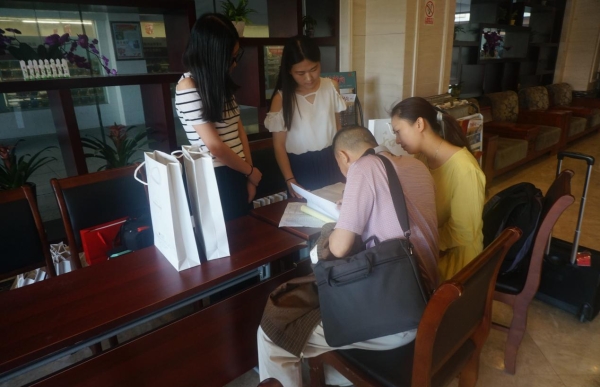 到达宾馆后,来宾先在前台办理入住的相关手续,之后另外两名志愿者拿出反馈单请来宾填写返程时间,以便学校在来宾返程时调整接送时间。以及填写客房号,让其他来宾更加方便的寻找对方进行学术交流。来宾们陆陆续续的到达,有而立之年的学者,也有花甲之年的学者,一路风尘仆仆,身体疲惫目光却依旧熠熠生辉,路途再遥远,也阻挡不了他们对探讨产业知识的热忱。