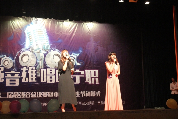 万众瞩目,灯光聚集。12位最强音雄突出重围,杀进决赛。这一次不仅是最强音总决赛,同时也是国际学院巾帼月女生节的闭幕式。这一个月来,国际学院举办的巾帼女篮比赛、“信连心”活动、假面舞会已经相继结束。在节目伊始的巾帼月颁奖仪式结束后,开场秀《小苹果》与国际舞蹈队完美结合成功地掀起了一番热潮。第一轮选手们两两组合,结伴献唱。卢兄来与王宇航选手联手来带的《浮夸》因其帅气十足的动作引得观众尖叫连连。有的选手执起手中的吉他,在朦胧的灯光下,静静谱写属于他们的《往日时光》。每位选手的表现是非常精彩,经过第一轮的评委点评和大众评审投票,淘汰两名选手后进入第二轮。