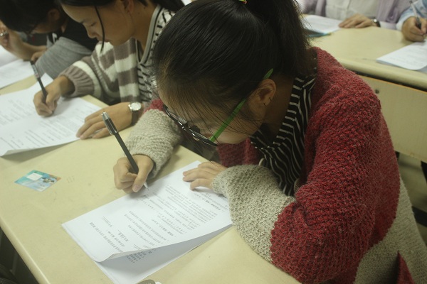 2015年10月15日晚上6点半,国际学院新生们在大学的第一场考试——学生手册考试就在秋高气爽的夜晚拉开了序幕。为了让同学们更加了解学校规章制度,更好的融入大学进行大学生活,故学校在国际楼安排此次考试。团委学生会干事为监考官,全体大一同学参加考试。