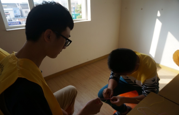 由于是初次参加的志愿者活动,大一志愿者们显得有些不安和慌张,但随着一个个可爱的小朋友的到来,便转变为兴奋和开心的情绪。志愿者们把他们带到教室,在进行签到后,便开始教他们写作业。对于小朋友有疑难的题目,志愿者们耐心认真的教他们给他们解答。在完成功课后,志愿者便教他们编织属于自己的手链,之后拿出飞行棋和他们一起度过欢乐时光。