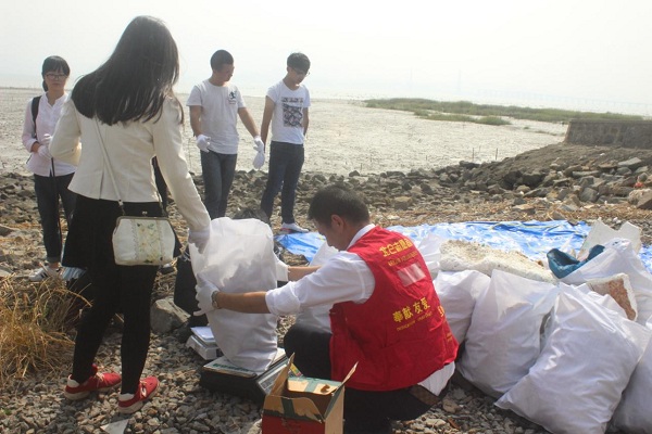 地球70%的面积是海洋,海洋对于我们来说是至关重要的。2015年10月24号,咸祥净滩志愿者活动由北仑区志愿大队张继勋带队,国际学院志愿者们共同参与。一早,志愿者们便来到鄞州咸祥南头村边的海滩清理垃圾。