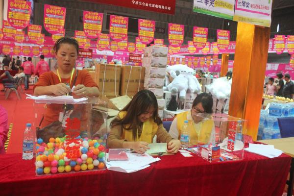 图为:志愿者们协助进行抽奖活动