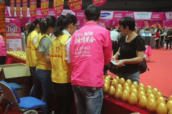 2015年11月7日,为了帮助家电博览会维护会场秩序,替顾客解决疑惑。志愿者们冒着寒冬的凉气,来到了北仑体艺中心,参加家电博览会发奖活动。