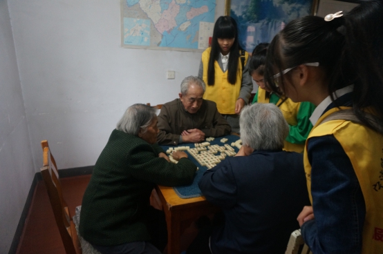 接着,老人们自告奋勇地教起志愿者们在敬老院自创的麻将游戏。在这里,年龄不成为志愿者和老人们成为朋友成为亲人的代沟。