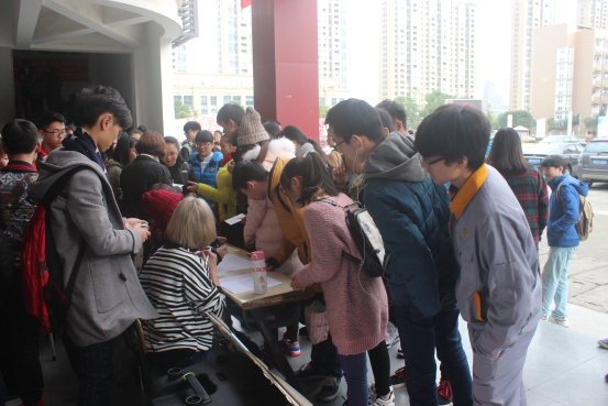 昨日微信后台设置188位微信抢票票数,但在晚上八点整就已经突破258个用户抢票成功数据。此次现场抢票活动不仅让一些没有在微信上抢票成功的学生也可以得到“舞动奇迹”总决赛的门票,而且微信抢票成功的同学可以凭填写的信息,在食堂门口一楼抢票处直接领取门票!抢票时间一到,大家都蜂拥而至,食堂门口站满了人,不到一会时间,520张现场门票便被抢完,场面只能够用“激烈”来形容,可见“舞动奇迹”活动魅力之大。其余时间段迟来的学生有些就没有拿到门票,还有些在微信中抢了票但没去现场领票的学生因超过中午设定的时间而错过了门票。媒体部工作人员也都很负责的登记微信抢票信息,发放门票,为前来咨询门票的同学细心解答,以致“舞动奇迹”抢票活动圆满结束!