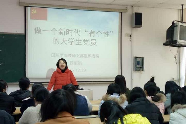 为使党员的修养素质得到提升,工作作风更加优良,道德水平有新的升华。国际学院于12月29日中午在国际楼201教室进行了一堂题为“做一个新时代“有个性”的大学生党员”的党校课,这节课由国际学院教师支部组织委员段丽娟老师为学生党员及入党积极分子讲授。