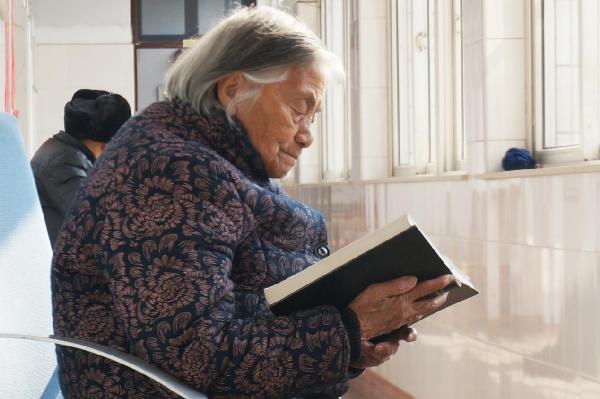 图为:老人正在认真看书