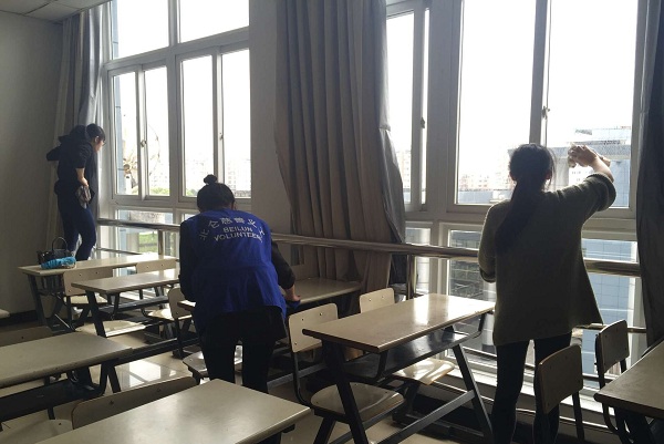 宁波职业技术学院国际学院的义工们在此次活动中体现了国际学院的特色与风采,干净明亮的学院环境就是最好的证明,一扇扇明亮的窗户,一张张干净的桌椅也给此次活动画上了一个圆满的句号。