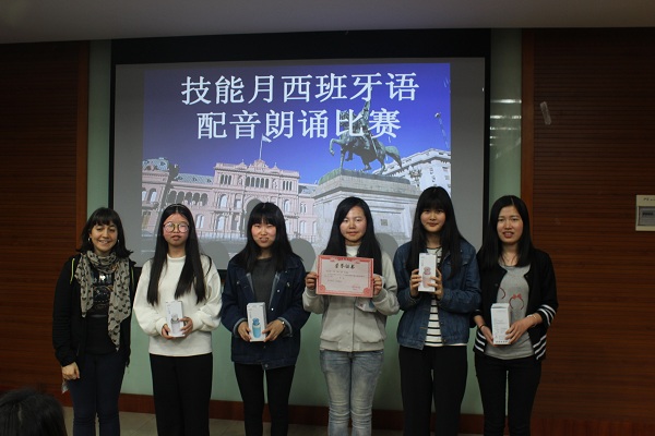 本次大赛以分组比赛的形式进行,全体同学分为6组,依次上台为动画片或电影配音,各自担任不同的角色,这对每个人来说都是一个令人期待的挑战。西班牙语被人们誉为“与上帝交谈的语言”,在比赛中,同学们把自己投入到角色中,用具有语速轻快特点的西班牙语给电影或电视剧配音,尽可能为观众还原真实的配音。毫无疑问,每组选手表现出的良好的比赛状态,都赢得了观众最热烈的掌声。评委认真仔细地聆听同学们的配音,并在打分表上写下分数。本次大赛历时一个半小时,最终决出一等奖一组,二等奖两组,三等奖三组。之后,西班牙语外教给同学们颁发奖品,以资鼓励。