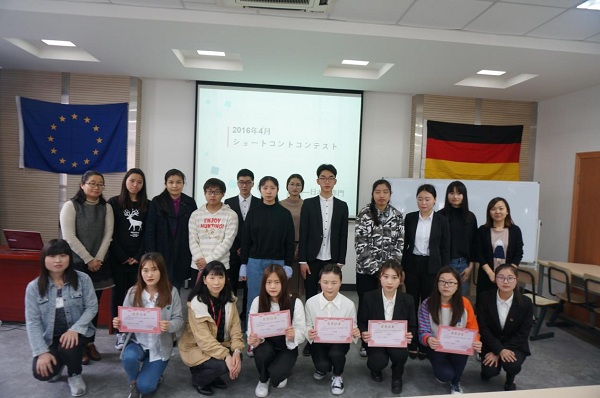比赛开始前由主持人进行报幕,第一组参赛选手以便利店为背景进行表演,他们流利地用日语相互对话,带领了比赛开场的气氛。第二组选手身着正装,通过丰富的场景和情节以及有条不紊的表演,展示了他们不低的日语水平。而第五组的两位选手搭档的表演则精彩逗趣,使人眼前一亮。他们的表演通过丰富的表情和细腻的肢体动作来表达,与日语对话结合在一起娴熟流露,自然从容而不刻板无趣,生动的表演赢得了在座日语老师和其他选手的欢笑和掌声。其他小组也不甘示弱,抓住细节,运用道具,沉着地将身心投入于比赛中。比赛最后,主持人宣布了比赛结果,第五组最终得以获得一等奖,而其他组分获二三等奖,而后由各日语老师分别为获奖选手们颁奖。
