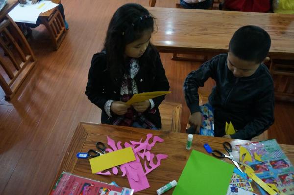第二节课时,志愿者们准备好做贺卡及礼物的材料,然后让小朋友们和志愿者们一起制作母亲节的贺卡,小朋友们一个个都很兴奋,跃跃欲试。小朋友们一个个的想法都很丰富,制作的贺卡及礼物都很新奇,也充满了对母亲的感激和爱意。