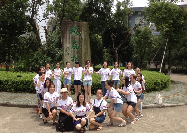 上9时,天气虽热但是丝毫不影响校友们的热情。她们身穿特别制作的毕业九年的T恤,成为校园一道独特的风景线。故地重游,自是别有一番感触,看到宁职院的种种种变化,勾起了她们大学时代一些美好回忆。在艺201教室,国际学院院长杨林生老师,详细介绍了学院的发展历史、当前的情况与未来机遇,特别报告了学院在师资队伍、人才培养、学科方向、科研能力、尤其在国际化建设等方面近年来取得的较大成绩,当提及国际学院即将在两年后搬入拔地而起新建的“援外大楼”时候大家纷纷鼓掌庆贺。作为班长宣园园感慨道:“时间去哪儿了,光阴荏苒,九年就这么匆匆的流逝了,虽然大家都成家立业为人父母,但是同学之间那份友谊友谊却像美酒一样愈发的醇香和深厚,同时每位校友送上对母校最真诚的祝福,愿宁职院越来越好,愿国际学院越来越强。”会上杨院长希望与会校友能够为学校和学院发展多提宝贵意见,在今后工作道路上能找对方向,并向着目标勇往直前,回报社会。会后,校友们在乐伟老师的带领下参观了体育馆、校友林、图书馆并且在标志性建筑物前纷纷合影留念。