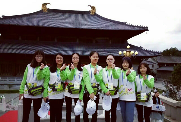 参与此次活动的国际学院志愿者们曾参与过第二十四届中日韩运动会中的志愿者活动,具有更丰富的志愿服务经验和热情真诚的态度。在经历过为时半天的培训过后,志愿者们被分为贵宾组、场外组、奠基组等多个小组,分区域进行服务工作。而在第二次的培训中,志愿者们到达雪窦山开展培训,熟悉岗位。活动当天,雪窦山上刮着瑟瑟的寒风,但这并没有减少志愿者们的热情,她们依然坚守在志愿岗位上寸步不离,当韩日嘉宾或僧侣们需要翻译服务时,志愿者们则利用自身的语言优势进行引导和沟通。而整个活动在志愿者们的帮助下,顺利地举办着。